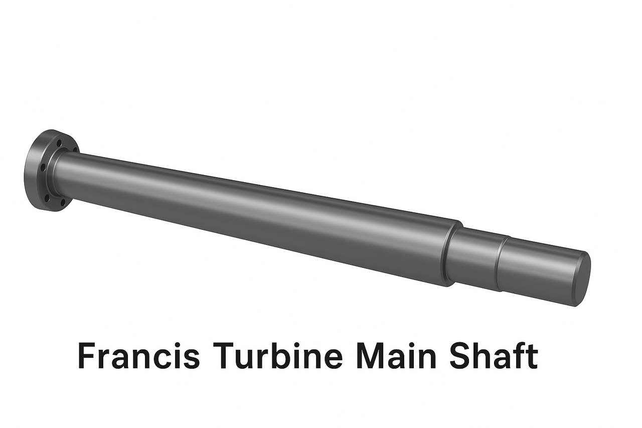 Designed for medium to large Francis turbines, the main shaft transmits hydraulic torque from the runner to the generator. It is widely used in hydroelectric power plants, supporting vertical and horizontal turbine configurations.